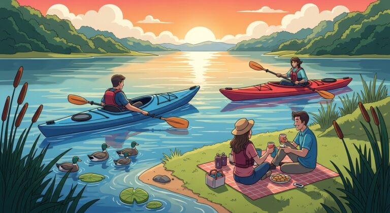 In the quaint town of Riverview, nestled between rolling hills and whispering trees, the summer sun cast a golden hue over the shimmering lake. For Mia, a spirited 26-year-old with a penchant for adventure, this was the perfect setting for a kayaking trip with her friends. She had meticulously planned the day, excited to paddle into the heart of nature with her two closest companions, Sarah and Jess. Each of them was to rent a kayak from the local shop, while Mia would glide over the water in her trusty vessel, a sleek blue kayak that had weathered many adventures.