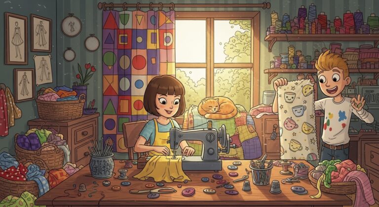 With that, they spent the evening browsing online for fabric options, laughing and enjoying each other’s company as they explored the vibrant patterns and textures. They eventually settled on a playful geometric print that reflected both of their personalities—a perfect blend of creativity and compromise.