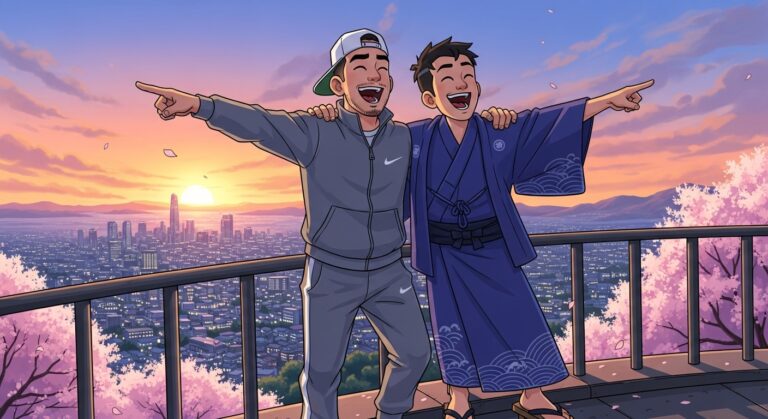 As the sun began to set, casting a golden hue over the city, they found themselves at a scenic overlook. The city lights began to twinkle like stars, and in that moment of tranquility, Yuki turned to Mia. “You know, I realize now that it’s not just about what we wear, but how we express ourselves through our choices. I’m grateful for today, despite our rocky start.”